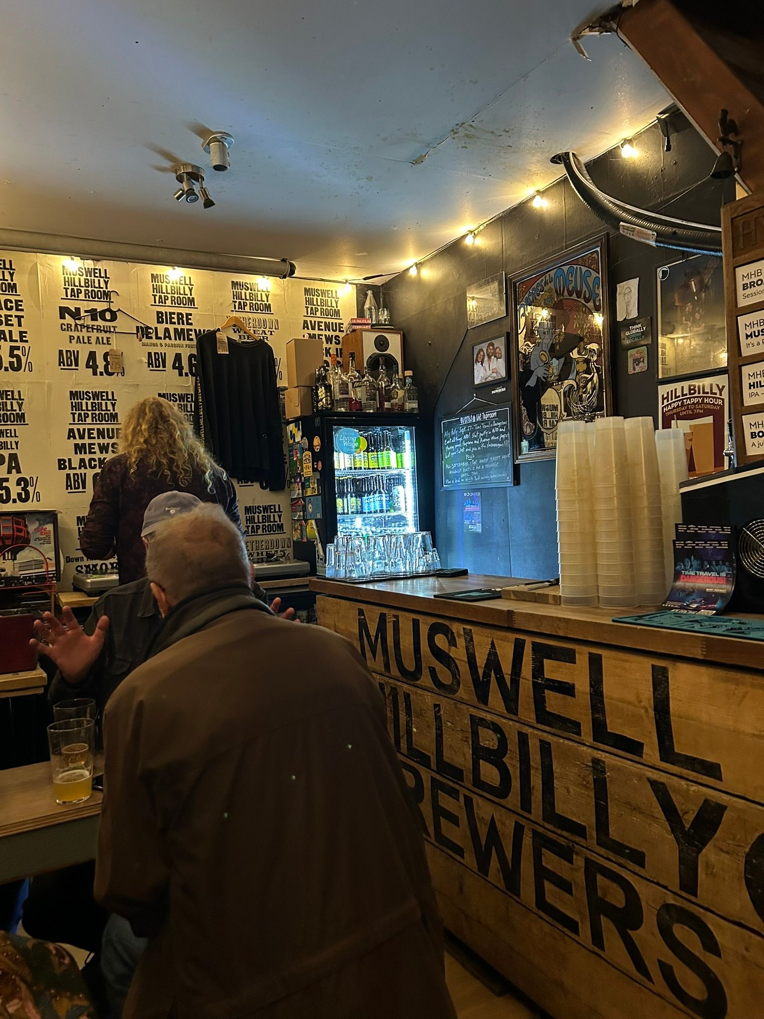 My next journey felt highly adventurous, as it took me up to the Arctic Circle of the Northern Line as far as Woodside Park. Having stopped off first at the London Brewing Co at the “Bohemia” in North Finchley (lovely huge art deco pub venue, beer didn’t quite do it for me), I then caught a bus down to Muswell Hill Broadway and located, hidden away in a mews off the main drag, Muswell Hillbillies. A tiny cosy place so I just managed to squeeze onto the last available small table. Lovely friendly atmosphere, with someone cranking up 70s soul / disco on what someone my age can only describe as a “record player”. Both the Bowes Park Pale and Hillbilly IPA were fresh and flavourful - not a huge selection but that doesn’t matter when the staples are that good.